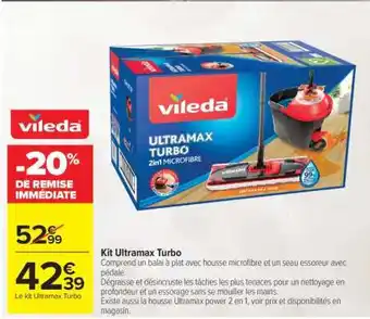 En plus de l'offre Kit Ultramax Turbo, Carrefour propose une large gamme de produits. Consultez le Catalogue Carrefour hebdomadaire pour découvrir les meilleures offres et promotions. En plus de Kit Ultramax Turbo, il y a aussi : VILEDA Kit Ultramax Turbo, Kit turbo Systeme & VILEDA Kit turbo Système.