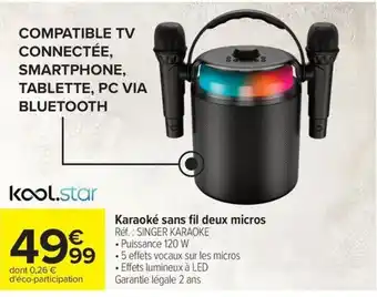 Actuellement en offre chez Carrefour : Koolstar Karaoké sans fil deux micros ✅ Valable du 5-05 au 24-05.