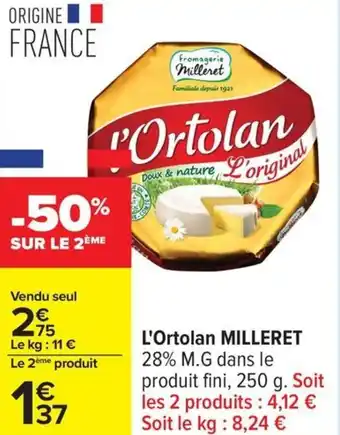En plus de l'offre L'ortolan milleret, Carrefour propose une large gamme de produits. Consultez le Catalogue Carrefour hebdomadaire pour découvrir les meilleures offres et promotions. En plus de L'ortolan milleret, il y a aussi : Milleret l'ortolan, Fromagerie milleret roucoulons noix & offre 3.