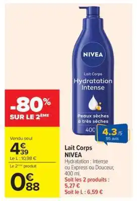 Lait Corps Nivea offres et promotions en ligne chez Carrefour