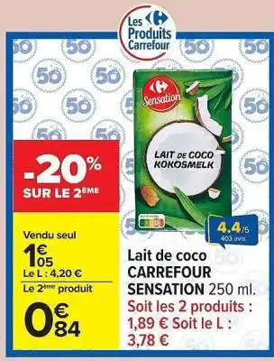 Offre Lait de coco CARREFOUR SENSATION chez Carrefour