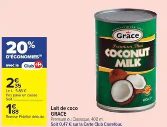 Lait de coco GRACE : offres et promos Carrefour à découvrir