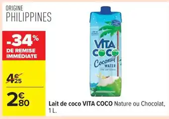 Lait de coco VITA COCO : offres et promos Carrefour à découvrir