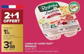 En plus de l'offre Lardons de volaille Halal, Carrefour propose une large gamme de produits. Consultez le Catalogue Carrefour hebdomadaire pour découvrir les meilleures offres et promotions. En plus de Lardons de volaille Halal, il y a aussi : Lardons de volaille Halal RÉGHALAL, Réghalal - lardons de volaille halal & RÉGHALAL Lardons de volaille Halal.