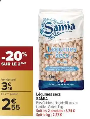 Actuellement en offre chez Carrefour : Légumes secs SAMIA ✅ Valable du 10-03 au 22-03.