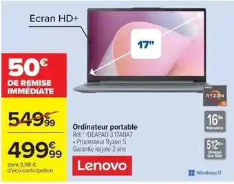Actuellement en offre chez Carrefour : Lenovo - ordinateur portable ✅ Valable du 21-04 au 4-05.