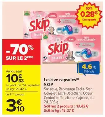 Actuellement en offre chez Carrefour : LESSIVE CAPSULES SKIP ✅ Valable du 22-01 au 9-02.