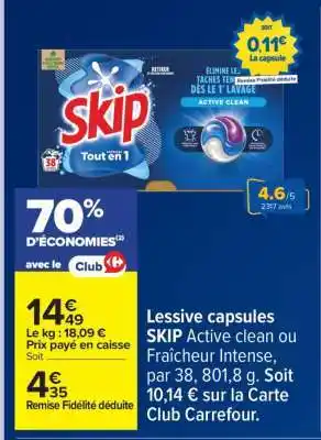 Actuellement en offre chez Carrefour : LESSIVE CAPSULES SKIP ✅ Valable du 17-02 au 2-03.