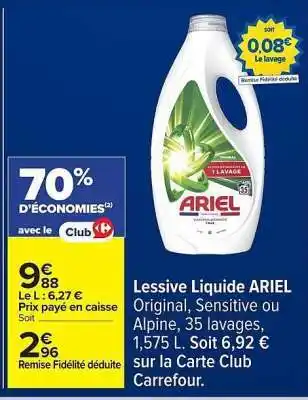 Offre LESSIVE LIQUIDE ARIEL chez Carrefour