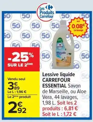 En plus de l'offre Lessive liquide CARREFOUR ESSENTIAL, Carrefour propose une large gamme de produits. Consultez le Catalogue Carrefour hebdomadaire pour découvrir les meilleures offres et promotions. En plus de Lessive liquide CARREFOUR ESSENTIAL, il y a aussi : Lessive liquide carrefour essential, Carrefour essential lessive liquide & Carrefour essential lessive liquide.