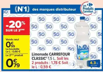 En plus de l'offre Limonade CARREFOUR CLASSIC', Carrefour propose une large gamme de produits. Consultez le Catalogue Carrefour hebdomadaire pour découvrir les meilleures offres et promotions. En plus de Limonade CARREFOUR CLASSIC', il y a aussi : Carrefour - limonade classic', Carrefour classic' limonade & Carrefour - classic.