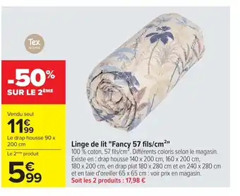 En plus de l'offre Linge de lit Fancy 57 fils/cm², Carrefour propose une large gamme de produits. Consultez le Catalogue Carrefour hebdomadaire pour découvrir les meilleures offres et promotions. En plus de Linge de lit Fancy 57 fils/cm², il y a aussi : Tex home linge de lit fancy 57 fils/cm², Linge de lit Fancy & Linge de lit Uni coton 57 fils/cm2.