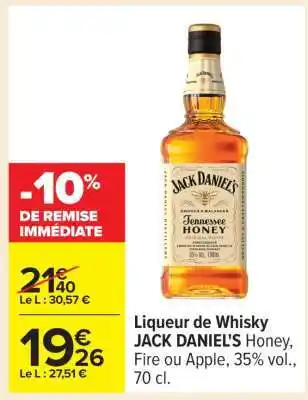 Actuellement en offre chez Carrefour : Liqueur de Whisky JACK DANIEL'S ✅ Valable du 27-01 au 9-02.
