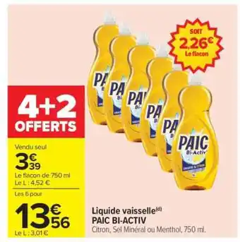 LIQUIDE VAISSELLE “PAIC BI-ACTIV” offres et promotions en ligne chez Carrefour