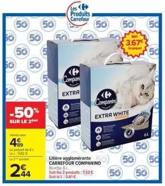Actuellement en offre chez Carrefour : Litière agglomérante CARREFOUR COMPANINO ✅ Valable du 22-01 au 9-02.