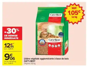 Actuellement en offre chez Carrefour : Litière Végétale Agglomérante À Base De Bois Cat's Best ✅ Valable du 23-04 au 11-05.