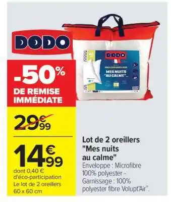 Lot de 2 oreillers Mes nuits au calme : offres et promos Carrefour à découvrir