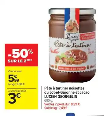 LUCIEN GEORGELIN Pâte à tartiner noisettes du Lot-et-Garonne et cacao offres et promotions en ligne chez Carrefour