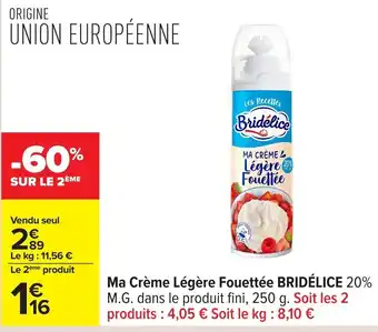 Ma crème légère fouettée bridélice offres et promotions en ligne chez Carrefour