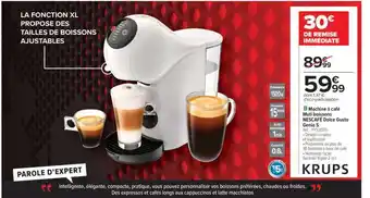 Actuellement en offre chez Carrefour : Machine à café Multi boissons NESCAFÉ Dolce Gusto Genio S ✅ Valable du 7-01 au 26-01.