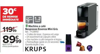 Actuellement en offre chez Carrefour : Machine à café Nespresso Essenza Mini Gris ✅ Valable du 24-02 au 16-03.