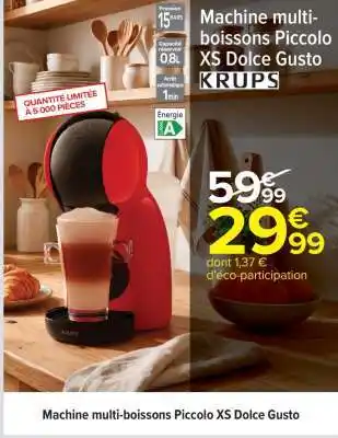 Actuellement en offre chez Carrefour : Machine multi-boissons Piccolo XS Dolce Gusto ✅ Valable du 17-03 au 30-03.