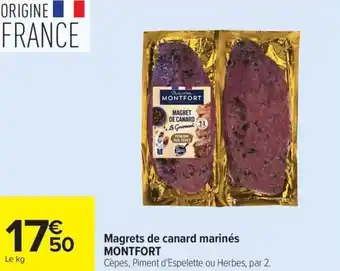 Actuellement en offre chez Carrefour : Magrets de canard marinés MONTFORT ✅ Valable du 5-05 au 18-05.