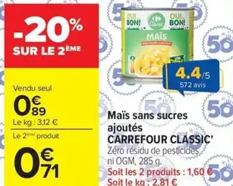 Une promotion Maïs sans sucres ajoutés CARREFOUR CLASSIC prévue la semaine prochaine ?