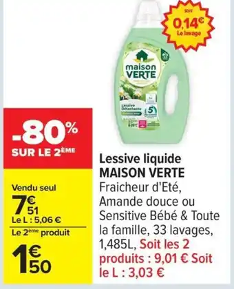 MAISON VERTE Lessive liquide offres et promotions en ligne chez Carrefour