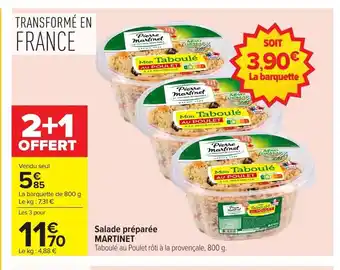 Actuellement, MARTINET Salade préparée est en promotion chez Carrefour. Toutes les informations utiles comme le prix, les conditions et la durée de validité sont affichées sur cette page. Consultez également les promotions similaires pour MARTINET Salade préparée, afin de faire le meilleur choix. La promo MARTINET Salade préparée est valable du 23-04-2026 au 11-05-2026. Si elle est expirée, regardez les autres offres équivalentes. Vous pouvez aussi suivre cette catégorie de produit pour être alerté lorsqu’une nouvelle promotion MARTINET Salade préparée apparaît chez Carrefour.Questions fréquemment posées au sujet de MARTINET Salade préparée
