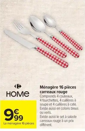 Actuellement en offre chez Carrefour : Home Ménagère 16 pièces carreaux rouge ✅ Valable du 5-05 au 24-05.