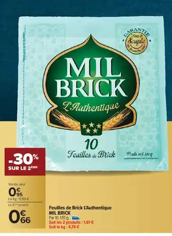 Actuellement en offre chez Carrefour : MIL BRICK Feuilles de Brick L'Authentique ✅ Valable du 17-02 au 2-03.