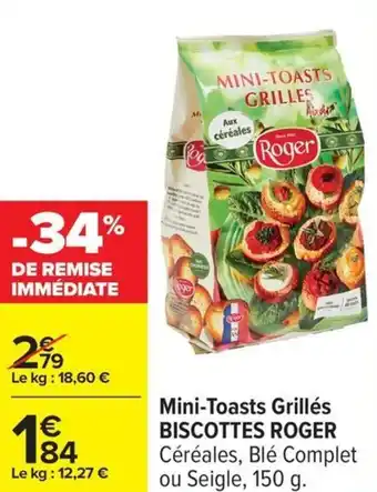 Actuellement en offre chez Carrefour : Mini-toasts grillés biscottes roger ✅ Valable du 9-12 au 24-12.
