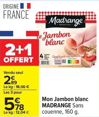 Mon jambon blanc madrange : offres et promos Carrefour à découvrir