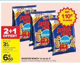 Actuellement en offre chez Carrefour : MONSTER MUNCH Le lot de 2 ✅ Valable du 23-04 au 11-05.