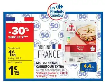 Offre Mousse de foie CARREFOUR EXTRA chez Carrefour