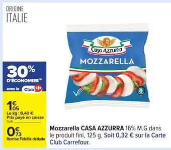 Actuellement en offre chez Carrefour : Mozzarella Casa Azzurra ✅ Valable du 27-01 au 9-02.