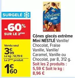 Offre Nestlé - cônes glacés extreme mini chez Carrefour
