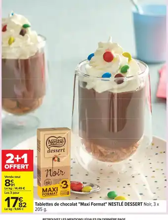 Actuellement en offre chez Carrefour : NESTLÉ DESSERT Tablettes de chocolat Maxi Format ✅ Valable du 21-01 au 16-02.
