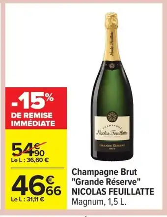 Offre NICOLAS FEUILLATTE Champagne Brut Grande Réserve chez Carrefour