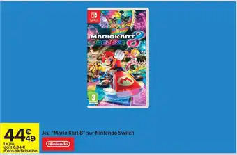 Actuellement en offre chez Carrefour : NINTENDO Jeu Mario Kart 8 sur Nintendo Switch ✅ Valable du 29-12 au 12-01.