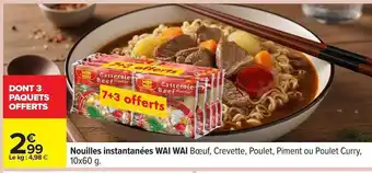 Nouilles instantanées WAI WAI offres et promotions en ligne chez Carrefour