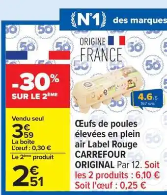 Œufs de poules élevées en plein air Label Rouge CARREFOUR ORIGINAL offres et promotions en ligne chez Carrefour