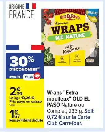 Actuellement en offre chez Carrefour : OLD EL PASO Wraps Extra moelleux ✅ Valable du 17-03 au 30-03.