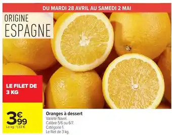 Quand Oranges à dessert sera-t-elle en promotion ? Ou encore : "Est-ce que Oranges à dessert sera en promotion la semaine prochaine ?" C’est une question fréquente. Beaucoup de consommateurs établissent leur liste de courses à l’avance. Pour cette raison, nous mettons en ligne les informations sur les promos à venir dès qu’elles sont connues. Cela vous permet de planifier vos achats et de faire de bonnes affaires. Consultez régulièrement notre site pour savoir si une nouvelle promo sur Oranges à dessert arrive bientôt chez Carrefour.Questions fréquemment posées au sujet de Oranges à dessert