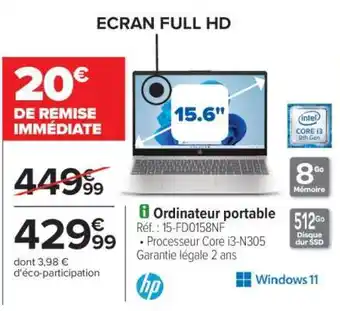 Offre Ordinateur portable chez Carrefour
