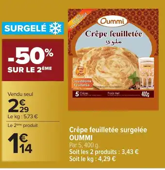 Actuellement en offre chez Carrefour : OUMMI Crêpe feuilletée surgelée ✅ Valable du 3-02 au 16-02.