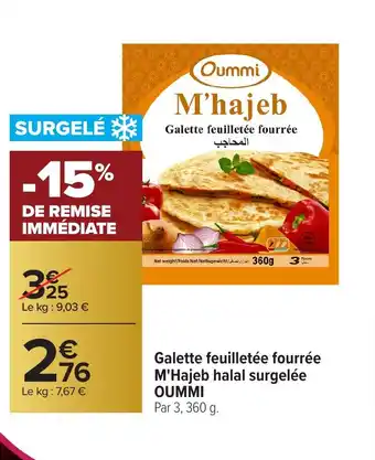 Actuellement en offre chez Carrefour : OUMMI Galette feuilletée fourrée M'Hajeb halal surgelée ✅ Valable du 3-02 au 16-02.