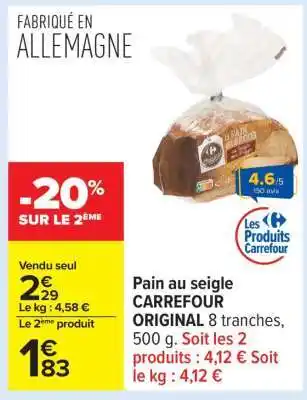 Actuellement en offre chez Carrefour : Pain au seigle CARREFOUR ORIGINAL ✅ Valable du 13-01 au 26-01.