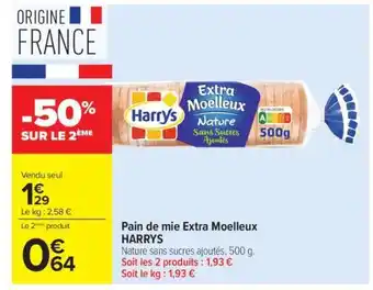 Actuellement en offre chez Carrefour : Pain de Mie Extra Moelleux Harrys ✅ Valable du 14-04 au 27-04.